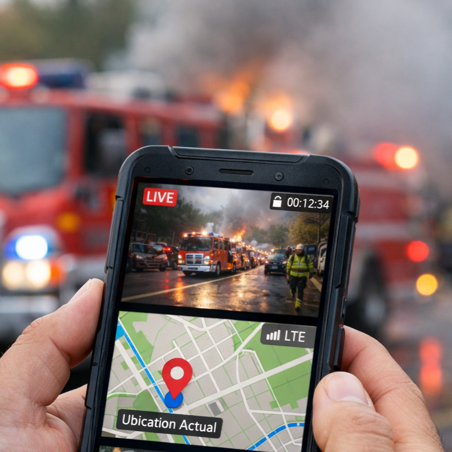 Entre sus capacidades destacan la transmisión de ubicación GPS, video en vivo y datos del usuario, operando sobre infraestructura LTE para asegurar conectividad confiable.